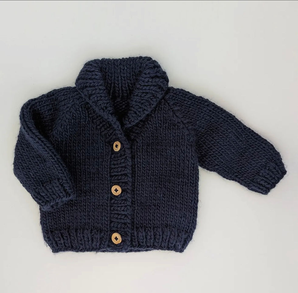 What a fun way to greet the world! Say hi. with our cozy pullover sweater knit in Surf Blue hued yarn. It has cable trim raglan sleeves with hi. knit into the front in Natural yarn. The neck is softly knit, making it easy to pull over little heads. Hand-knit in chunky yarn, it is soft and warm.